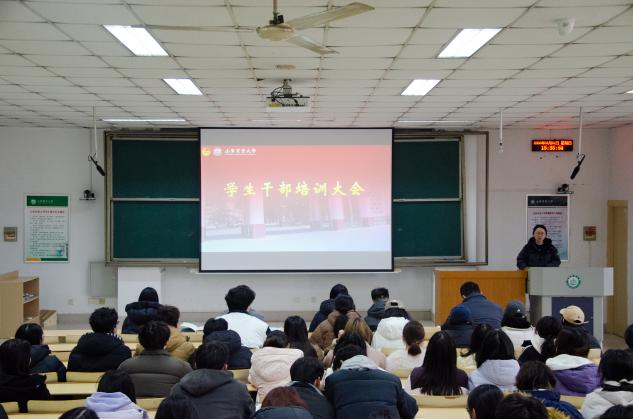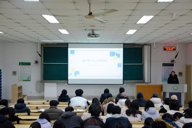 会上,徐振珍及团委老师对新学期重点工作进行系统部署,围绕思想引领、能力提升、学风建设等方面,全面梳理2026年学团工作的总体思路和重点任务,同时深入分析各年级学情,针对性地提出加强学院学风建设的具体举措。随后,各年级辅导员结合所负责专项工作和年级特点,对全体学生干部就校园安全稳定、创新创业和社团管理、学生心理健康、社会实践四个专题进行培训,进一步细化新学期工作安排,明确各项任务的时间节点和落实举措。